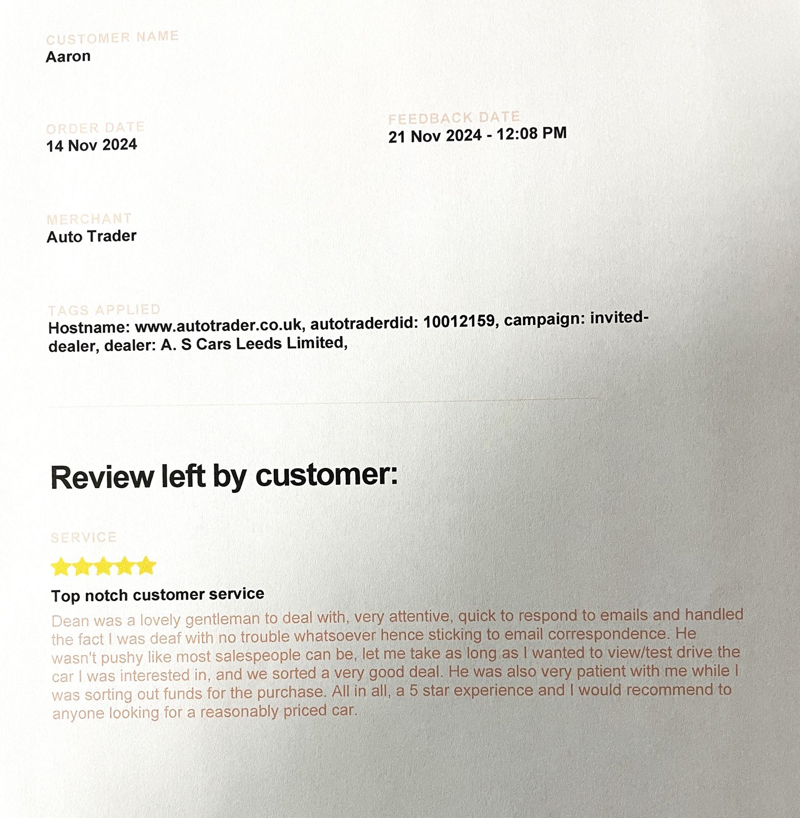 Supplied with both keys, Owner’s book pack and wallet, locking wheel key, Free HPI report available on request, Extendable warranties available, Minimum of 6 months Mot on all cars, Safety check and pre delivery inspection, Low-rate finance options are available, call for details. Subject to Status. Part Exchange Welcome, Finance Arranged. Buy with confidence all our cars are HPI checked, safety checked and come fully professionally valeted. 12 -24- or 36-month WARRANTIES available. Viewing Any Day Time by appointment call Dean on 01132 504000 OR 07831 577614. Or visit www.ascarsleedsltd.co.uk for more photos and information.